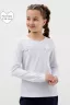 Блузка школьная для девочки с трикотажными длинными рукавами, круглым вырезом горловины, без застежки, прилегающего силуэта, на деталь переда настрочена кружевная кокетка, спереди на кружево сбоку прикреплен декоративный элемент. Сшита из однотонного мягкого хлопкового трикотажного материала с добавлением в состав хлопка 92% и лайкры 8 %. Школьная форма украсит и дополнит любой образ не только в школу, но и для повседневной носки, на день рождения, фотосессию и для особых случаев. Блузка отлично сидит по фигуре, движения в нем комфортные, позволяет выглядеть ребенку изящно. Отлично сохраняют цвет и форму при активной носке и после многократных стирок. Используемый материал блузки мягкий и приятный телу, устойчив к износу, не садится, не образует катышек на поверхности, имеет эффектный внешний вид.