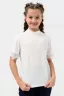 Школьная блузка для девочки с коротким рукавом. Мягкая трикотажная ткань и нежное кружево на рукавах и по переду изделия делают её универсальной - подходящей как для повседневной носки, так и для праздничных мероприятий. Узорчатый, полупрозрачный гипюр придаёт шарм этой модели. Модель составит одинаково удачный комплект и с юбкой, и с брюками. Воротник-стойка, несмотря на отсутствие застежки, хорошо тянется. Блузка сшита из качественного трикотажа, используемый материал не теряет форму после многократных стирок, мягкий и приятный к телу, устойчив к износу. Для сохранения первоначальных свойств изделия, важно соблюдать рекомендации по уходу.