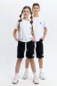 Шорты для мальчика и девочки прямого кроя с удобной посадкой на талии. У модели карманы в боковых швах. Пояс на резинке. Подойдут для занятия спортом и для прогулок.