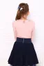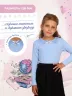 Блузка для девочек младшего и старшего школьного возраста, из трикотажного однотонного полотна – кулирка с лайкрой. Блузка полуприлегающего силуэта, с втачным длинным рукавом, с кружевным воротником, с центральной застежкой на петлю и пуговицу на спинке. Спереди отсутствуют линии членения. На спинке вырез в виде «капельки». Срез горловины и капля окантованы. Рукав одношовный. Низа рукава и изделия подогнуты. Спереди по центру горловины прикреплен декоративный элемент.