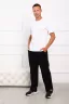 Брюки мужские с лампасами, с боковыми карманами и с нашивкой по низу левой брючины. Удобный эластичный пояс. Маломнущийся трикотаж, с высоким содержанием хлопка.