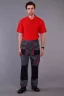 Брюки с застежкой гульфика на тесьму «молния» и притачным поясом. Передние половинки брюк с двумя боковыми накладными объемными карманами с фигурным входом, с наколенниками. Наколенники со входом для амортизационных накладок. На накладных карманах обработаны малые накладные карманы. Задние половинки с накладными объемными карманами с усилением и с клапанами. На правой задней половинке накладной карман под инструменты. Плотность ткани 240г/кв.м
