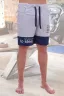 Мужские шорты из футера с лайкрой. По бокам карманы, пояс на резинке со шнурком, принты в виде надписей, вставки другого цвета, длина чуть выше коленей. Две расцветки — серая и синяя. Размеры от 44 до 62. Есть розница.