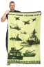 Полотенце банное махровое 100х150 см пестротканное мужское с дизайном в военной тематике. В составе - 100% хлопок, плотность - 380 г/м2. Мягкая текстура 2-х сторонней махры обеспечивает приятные ощущения после водных процедур. Полотенце в стиле милитари подходит мужчинам для лица, волос, тела, рук, ног. Применяется для ухода за собой дома в ванной, в бане, сауне, хаммаме, бассейне, джакузи, spa-центрах, массажных салонах, гостиницах, отелях и хостелах. Идеально для занятий спортом, фитнесом, йогой, туризмом. Можно постелить на лежак, шезлонг, использовать как покрывало, плед или махровую простыню, взять с собой в командировку. Большой размер позволяет использовать армейское полотенце как пляжное, спортивное, а также как банный килт или парео вместо банного халата, домашней одежды. Отлично впитывает влагу, жидкость, быстро сохнет, не деформируется, выдерживает частые стирки, не требует глажки и особого хранения. Отсутствие синтетических волокон делает изделие гипоаллергенным и подходящим для чувствительной кожи, в том числе для детей. Хорошо упаковано в плотный прозрачный зип пакет. Это прекрасный сюрприз - подарок любимому мужу, брату, сыну, руководителю, учителю, любому мужчине на День защитника Отечества 23 февраля, день рождения, новоселье, юбилей, на любой праздник или просто так без повода в знак внимания. Полезный презент тем, кто занят обустройством бани, подбирает аксессуары и принадлежности для дачи, сада, пикника или красивые подарочные наборы, комплект сувениров. Шикарный дизайн полотенца очаровывает с первого взгляда, а его мягкость дарит комфорт с первого прикосновения! Производитель – фабрика «Донецкая Мануфактура» (Ростовская обл.) – известный российский бренд.