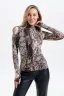 Водолазка - базовый элемент гардероба, который создаёт лаконичный образ и становится нежным дополнением к женственному изящному луку. Модель выполнена из мягкой вискозы, ткань лёгкая в уходе, хорошо тянется, что придаёт комфорт в движении и удобство в использовании. Благодаря приталенному крою и эластичным свойствам ткани, наша водолазка облегает фигуру. Воротник-стойка имеет комфортную высоту и плотно прилегает к шее. Современный тренд стиля и комфорта - длинный рукав с прорезью под пальчик создаёт уютный и изящный образ. Принт, имитирующий змеиную кожу, не оставит вас равнодушной, универсальность этой расцветки позволяет сочетать её с разнообразной цветовой палитрой и элементами одежды.