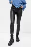 Брюки прилегающего силуэта из экокожи. Длинна классическая. Линия талии значительно завышенная. Вытачки на задней части формируют современный крой. На уровне колена – вертикальный шов. Пояс на жаккардовой эластичной резинке. Идеально впишутся в любой образ!