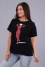 Футболка с ярким стильным принтом из кулирки, круглая горловина, спущенное плечо, фигурная пройма, короткий присборенный по плечу рукав. Модель в стиле оверсайз, комфортная, приятная к телу, необходимая базовая вещь в женском гардеробе, отличный вариант для работы в офисе, активного отдыха и прогулок.