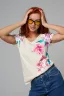 Футболка полуприлегающего силуэта, средней длины, с V-образной горловиной. Рукав цельнокроеный, короткий. Горловина и пройма обработаны бейкой из основного полотна. допустимо различие в цвете от представленного на фото.