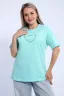 Футболка для женщин прямого силуэта, длиной до середины бедер. Рукав втачной, короткий. Горловина округлой формы. Полочка футболки украшена принтом.