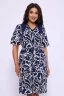 Оригинальный женский халат с красивым принтом на ткани. Рукав длинный с накладными карманами, V- образным воротником. Застежка-молния, длина ниже колена, очень приятный к телу.