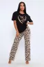 Костюм футболка и брюки. Футболка свободного кроя, короткий рукав на спущенном плече. Брюки прямого кроя на резинке.