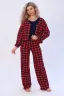 Женский костюм 3-ка из 100% хлопчатобумажного полотна в клетку - это идеальный вариант поднять настроение себе и окружающим! Стильный домашний комплект с брюками - незаменимая вещь в гардеробе каждой модницы. Костюм состоит из рубашки, майки и брюк палаццо. Рубашка с V-образным вырезом, длинным рукавом на резинке и застёгивающаяся на современные кнопки. Майка классическая, однотонная, без рукава. И конечно брюки палаццо успешно конкурирующие с другими моделями. Пояс брюк выполнен на специализированной поясной машине, по бокам имеются вместительные карманы. Комплект хорошо садится на любую фигуру, удобный крой позволяет чувствовать себя свободно, а всеми любимая расцветка придаёт образу лёгкость и романтичность.