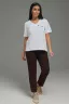 Брючный трикотажный костюм - это стильный и элегантный предмет гардероба, идеально подходит для дома и отдыха на любой период: весенний, осенний, летний и зимний. Костюм состоит из брюк и футболки, выполненный из высококачественного трикотажного материала. На карманах и по низу брюк декор дополнен декоративными пуговицами, как и на обтачке по фигурной планке. Изысканный комплект является идеальным выбором для всех, кто ценит качество и элегантность.