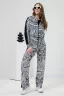 Костюм состоит из толстовки на молнии и брюк. Брюки прямые, на поясе, с боковыми карманами, с лампасами из отделочного полотна вдоль боковых швов. Толстовка прямая, на молнии, с капюшоном, с карманами "кенгуру", длиной до середины бедра. Рукав реглан, длинный, на манжете, с лампасами из отделочного полотна вдоль рукава.