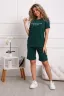 Костюм женский, лаконичный стиль: футболка прямого кроя, с короткими рукавами, с принтом в виде надписи на полочке и шорты на комфортном поясе, с удобными боковыми карманами.