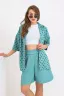 Костюм летний женский из льна представляет собой комплект - шорты и рубашка, который станет отличным дополнением вашего гардероба. Данная модель выполнена из льна с полиэстером. Ткань, из которой выполнен костюм летний, быстро сохнет и не садится при стирке. Приобретая данный летний женский костюм, вы получаете не только полноценный образ, но и два отдельных элемента одежды. Мы уверены, что летний женский костюм топ станет вашим любимым этим летом! За счет полиэфирной нити льняное полотно не так мнется.