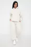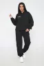 Костюм из облегченного футера с начесом прекрасно садится по фигуре за счет мягкости и дарит комфорт благодаря начесу. Дополнительная фишка печать на рукаве и полочке. В отделке использовано кашкорсе на рукавах и брюках, низ толстовки украшает декоративный шнур.