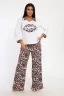 Красивый женский домашний костюм — состоит из футболки и брюк палаццо на резинке. Этот стильный домашний комплект выполнен из мягкого и приятного на ощупь трикотажного материала из 100% хлопка. Эта женская пижама с кюлотами сочетает женственность и удобство. Отличный выбор для повседневного использования дома и сна. Штаны клеш с карманами придают образу особый шарм и делают костюм популярным среди молодежи и подростков. Благодаря широким брюкам трубам, пижама выглядит модно и трендово. Этот ночной комплект предлагается в нескольких размерах, включая большие размеры, и подходит стройным девушкам и женщинам, а также полным дамам plus size, для высокого и невысокого роста. Благодаря свободному крою идеально подойдет для беременных женщин, давая им свободу движения и комфорт в домашних условиях. Хлопковая пижама изготовлена из качественного трикотажа (кулирка), который приятен к телу и обеспечивает комфорт во время ночного отдыха. Этот удобный стильный комплект станет отличным выбором для роддома, повседневного отдыха дома или даже для новогодней фотосессии или пижамной вечеринки.