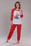 Комплект состоит из брюк и кофты. Брюки длинные с манжетом внизу. Кофта с укороченным рукавом реглан на манжете, имеет декоративную печать в стиле шелкографии с добавлением глитерра.