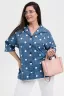 Рубашка-блузка из лёгкого мягкого трикотажного полотна прямого силуэта, на пуговицах, отложной воротник втачной рукав с манжетами, застёжка на пуговицах. Изделие хорошо сочетается с брюками, юбками, бриджами.