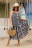 Сарафан просто очаровательный! Материал приятный отлично сидит по фигуре. Полоска создает интересный визуальный эффект, особенно нравится сочетание верхней и нижней частей. Удобные кармашки в боковом шве – маленьккая приятная деталь.