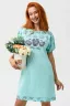 Сорочка с цельнокроеным рукавом, с кокеткой и двойной манжетой по линии низа из ткани-компаньона. Печать - три яблочка с глитером