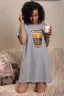 Молодёжная сорочка в виде удлинённой свободной футболки с современным принтом. Благодаря наличию в составе небольшого количества полиэстера сорочка не мнётся. Можно использовать в качестве домашней туники. Оттенок серого меланжа может отличаться