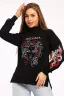 Толстовка просто замечательная! Материал очень мягкий и приятный к коже хорошо тянется и сохраняет форму. Принт выгледит стильно и оригинально, особенно нравится белый цвет. Отлично сидит, подчеркивает фигуру благодааря боковым разрезам.