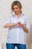 Рубашка белая офисная на пуговицах, низ прямой, с воротником, рукав 3/4.