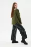 Туника женская прямого силуэта. Воротник отложной. Застежка на петли-пуговицы. Низ фигурный. Рукав втачной с манжетою. На левой части полочки нагрудный карман. Стилизованный принт в верхней части спинки, под воротником и на нагрудном кармане.