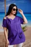 Туника женская, полуприлегающего силуэта. Вырез асимметричный, с одной стороны бретель с кокосовой пуговицей. На полочке и спинке кокетка из отделочной ткани. Рукав цельнокроеный до локтя на манжете. На полочке накладной карман со складкой и декоративной пуговицей.